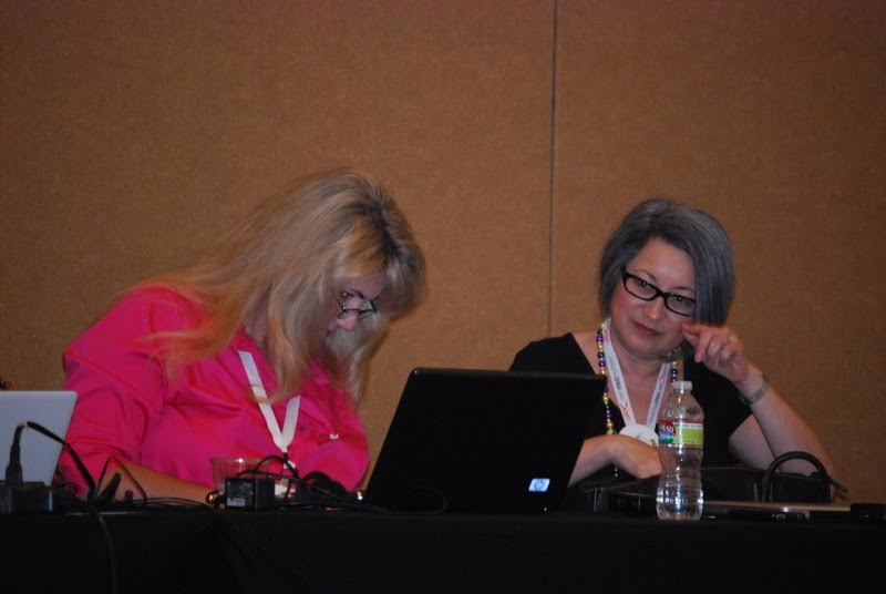 These are two GeneaBloggers who seem to have an awful lot in common! They had the same shoes, and each of them was wearing blue jeans and blue shirts. Pop Question! Do you know who they may be? Not fair if you attended Jamboree! I will leave this open for a couple days or so and give you the answer later on. In the meantime, I would love to read your guesses!